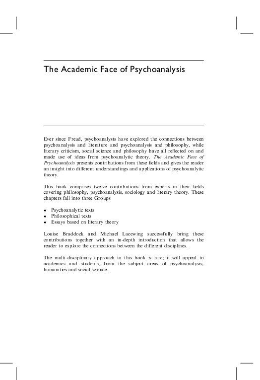 Pdf The Academic Face Of Psychoanalysis Michael Lacewing Academia Edu