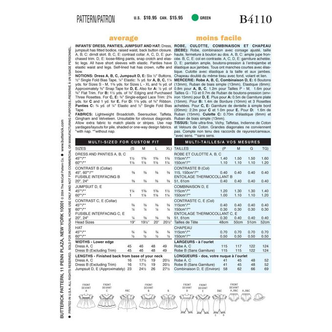 Butterick Baby Dress Sewing Pattern B4110 Hobbycraft